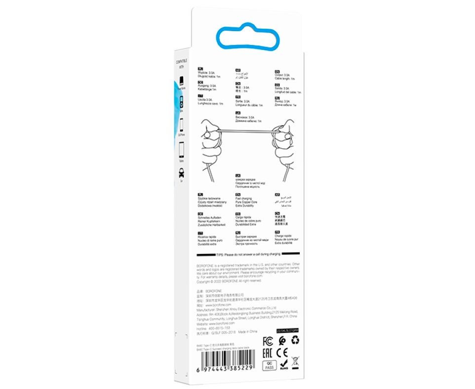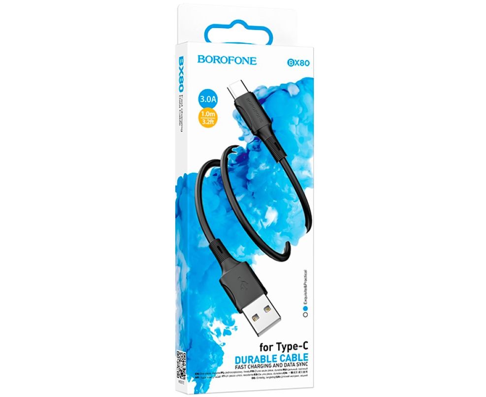 Кабель BOROFONE BX80/ USB Type-C/ 1m/ 2.4A/ Черный
