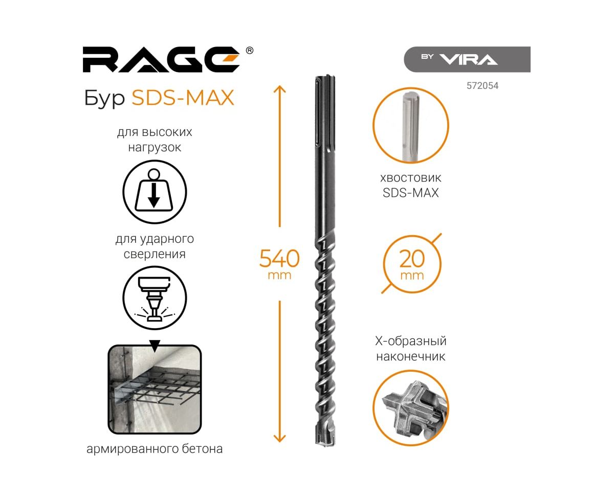 Бур по бетону VIRA Quadro-X 572054 20x540(410) мм sds-max rage by
