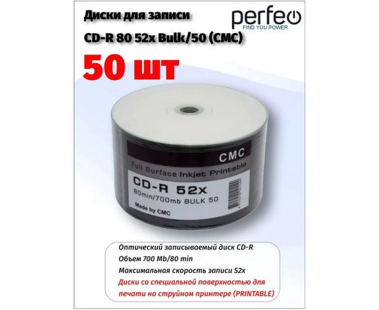 CD-R 80 52x Bulk/50 Full Ink Print (CMC)