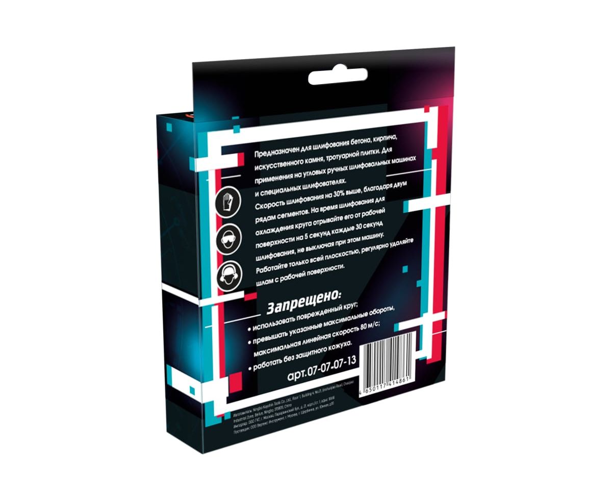 Технические характеристики сегментной алмазной чашки vertextools 07-07-07-13