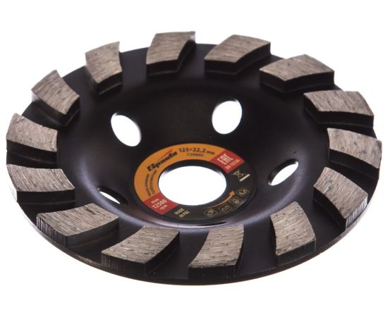 Алмазная зачистная чашка Sparta Турбо-сегмент 729885 диаметром 125 мм, с посадочным отверстием 22,2 мм, устанавливается на вал углошлифовальной машины и служит для шлифования бетонных, каменных, мраморных, гранитных и кирпичных поверхностей. С ее помощью можно проводить грубую обработку (понадобится несколько проходов) и чистовую шлифовку для придания материалу гладкости. Алмазный слой толщиной 4,5 мм обеспечивает ресурс работоспособности, достаточный для решения бытовых задач.