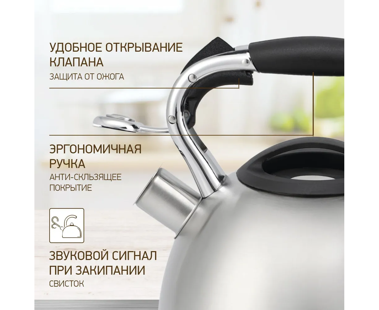 Двойные стенки, Ненагревающиеся ручки, Со свистком