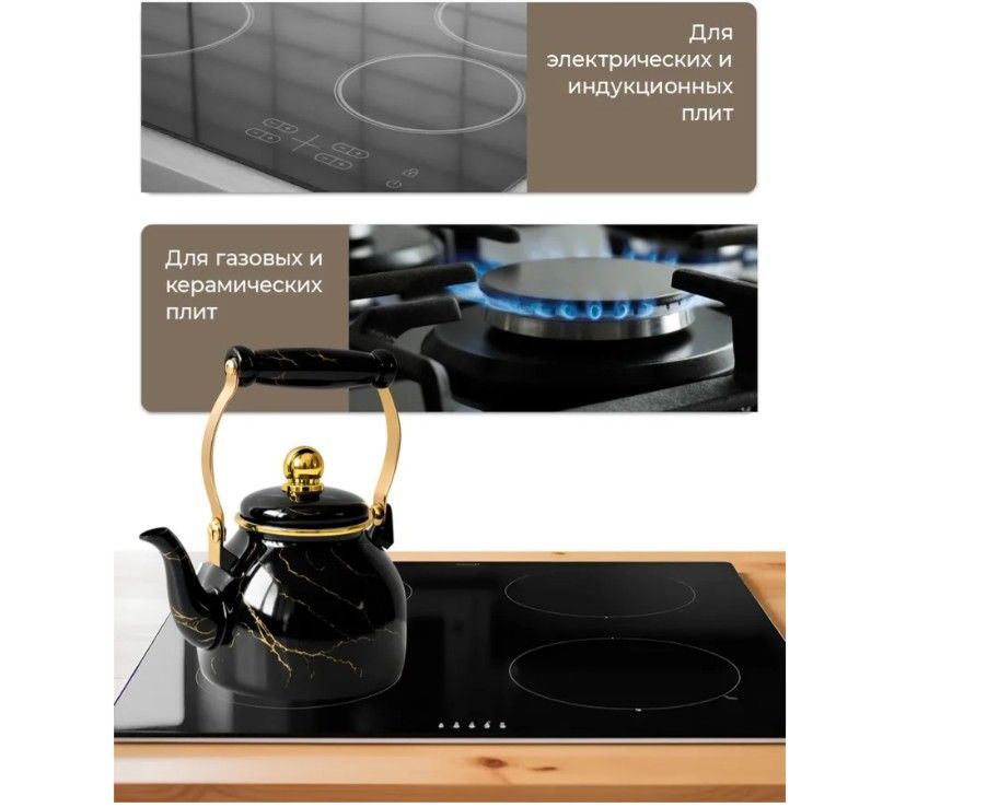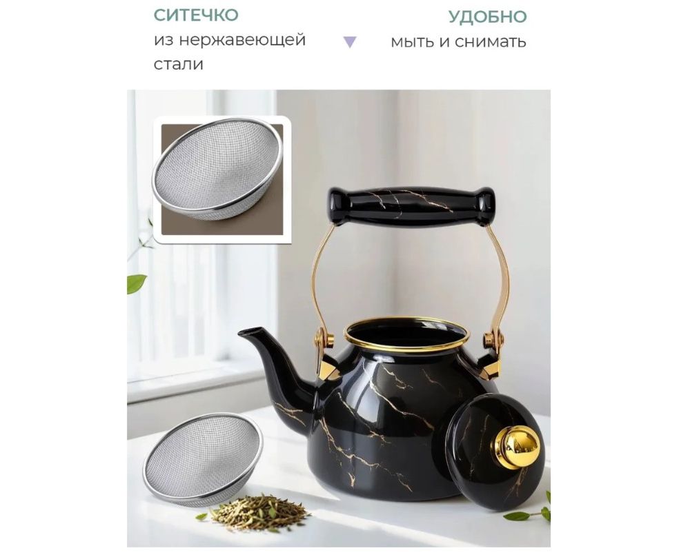 Чайник ZEIDAN Z-4536 1,3л Black marble съёмный фильтр из нержавеющей стали, эмалированная сталь, комбинированная ручка под золото