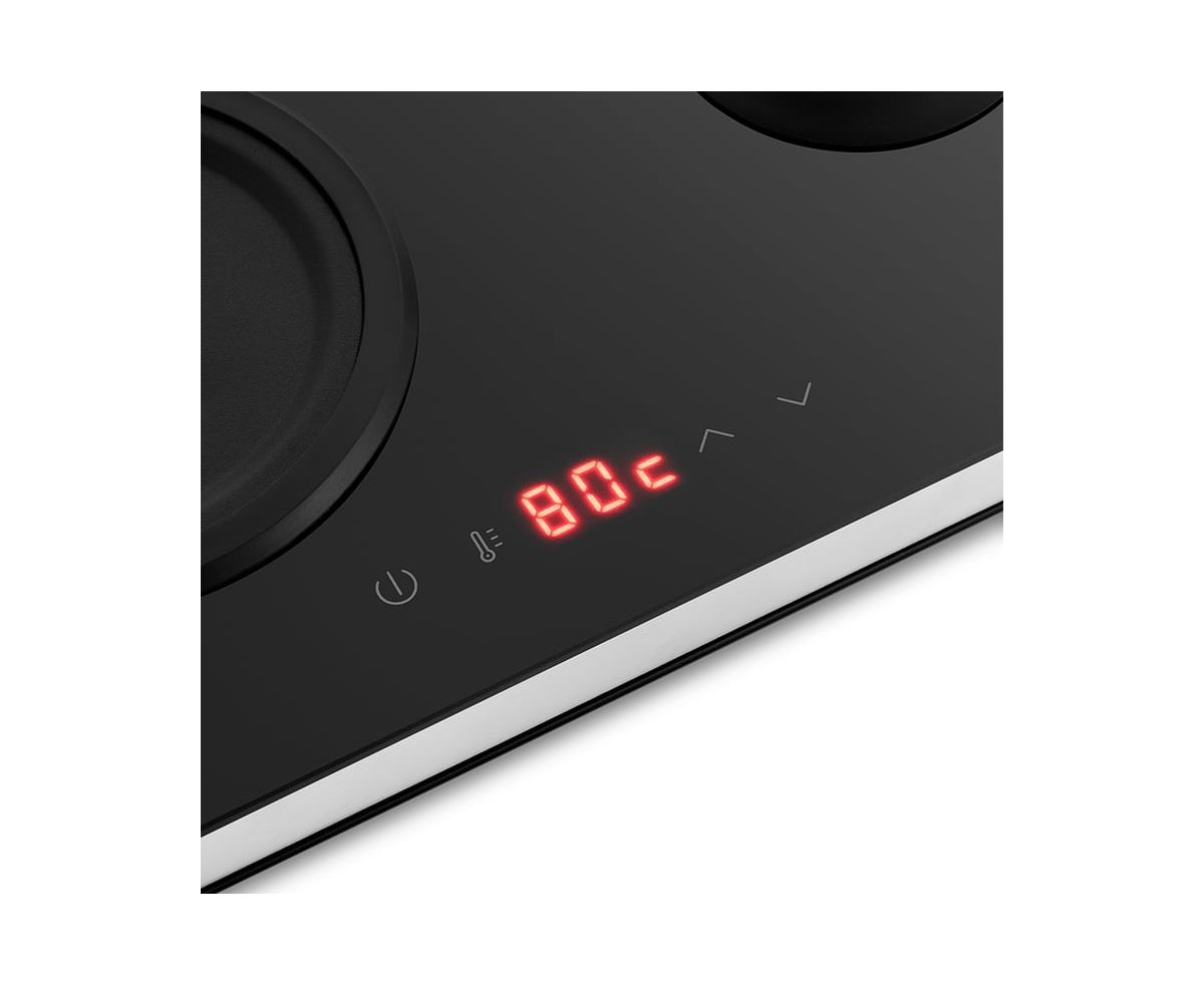 На базе находятся сенсорные кнопки для выбора температурного режима и настройки температуры нагрева. Нажатие на кнопки сопровождается звуковым сигналом. На дисплее отображается выбранная температура подогрева воды в кувшине. Автоматический режим поддержания тепла для чая — 80°С, для кофе 70°С. Ручная настройка для чая возможна от 75°С до 85°С, для кофе от 60 °С до 80°С с шагом 1°С. Прибор будет поддерживать выбранный режим в течение четырех часов, далее отключит подогрев.