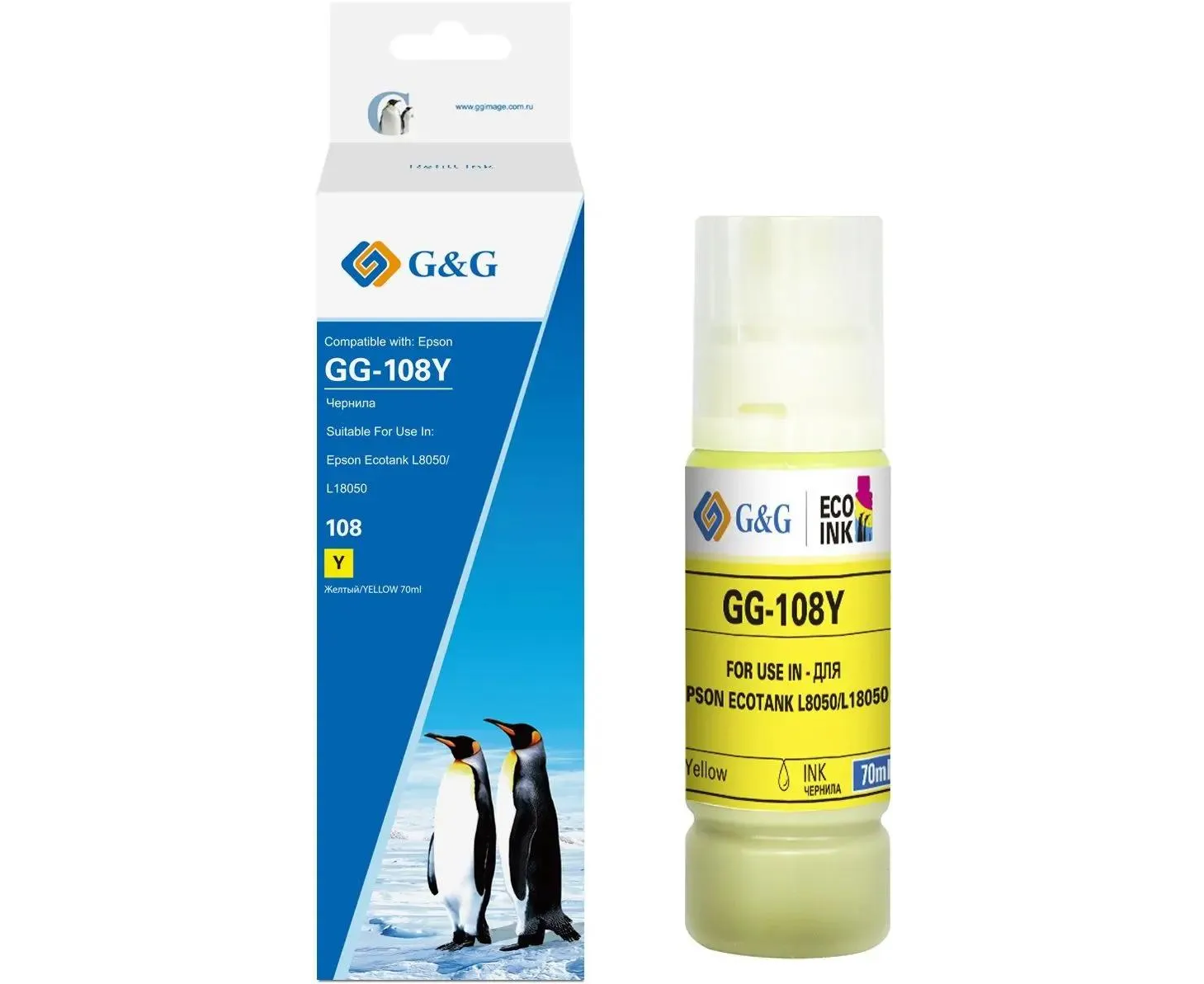 Чернила G&G GG-108Y C13T09C44A желтый70мл для Epson Ecotank L8050/L18050