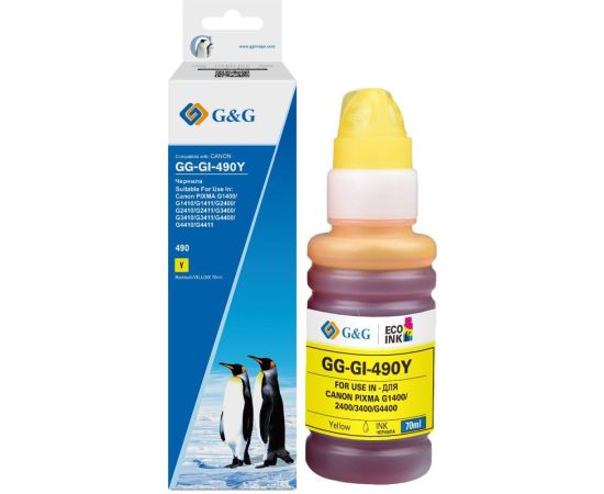 Чернила G&G GG-GI-490Y GI-490 желтый 70мл для Canon Pixma G1400/G2400/G3400/G4400