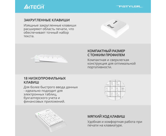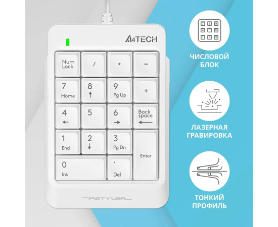Числовой блок A4Tech Fstyler FK13P белый USB slim для ноутбука