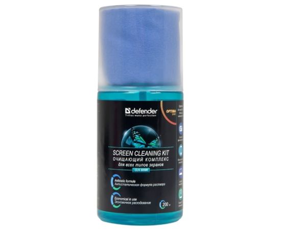 Чистящий спрей Defender 30598 для экранов / пластиковый флакон с пульверизатором 200 мл + микрофибра 20 х 20 см