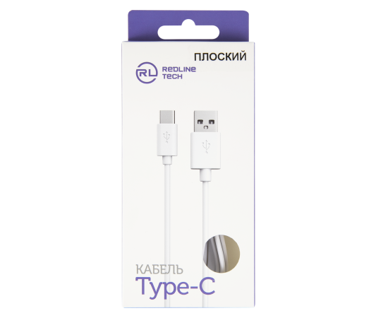 Дата-кабель Плоский Red Line USB - Type-C (2A), белый