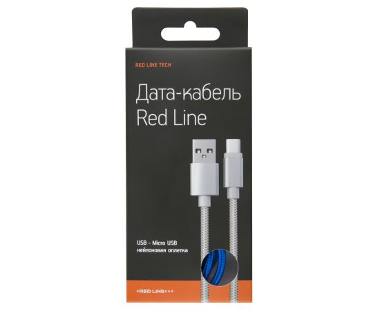 Дата-кабель Red Line USB - micro USB (2 метра) нейлоновая оплетка, синий