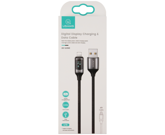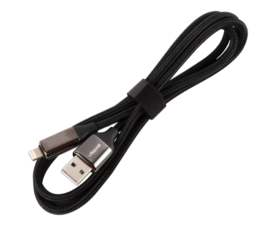 Дата-Кабель USAMS US-SJ543 U78 USB - Lightning, 2,4A (1,2 м), LED дисплей, нейлоновая оплетка, черный (SJ543USB01)