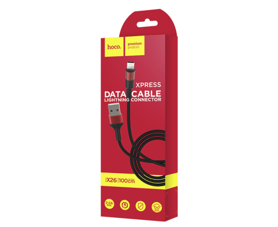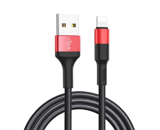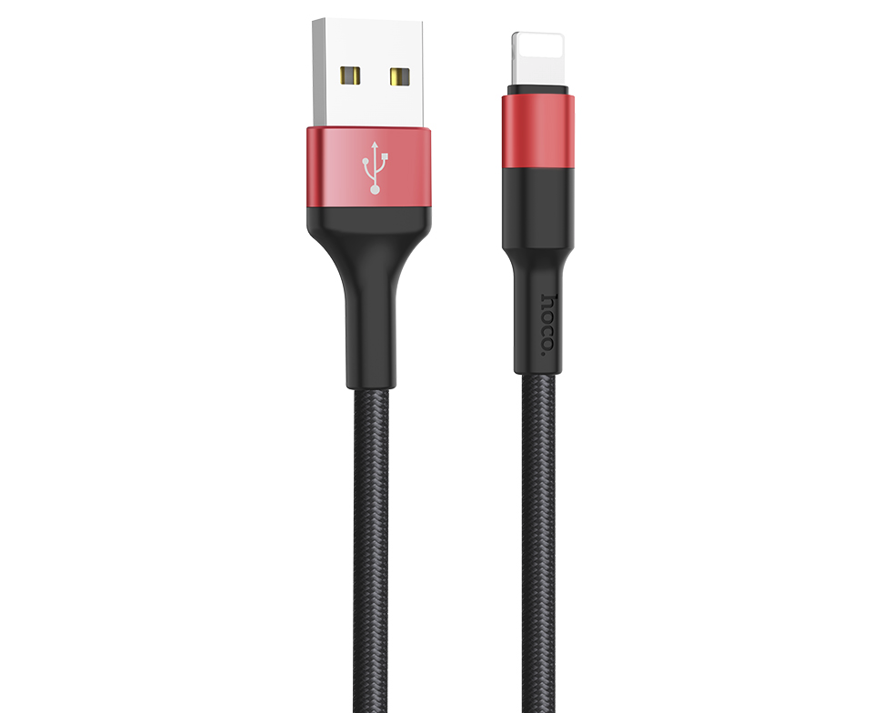 Дата-кабель USB 2.0A для Lightning 8-pin Hoco X26 нейлон 1м (Black Red)