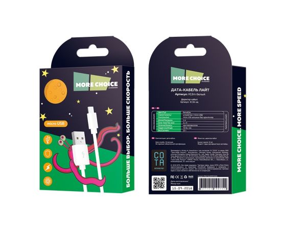 Дата-кабель USB 2.1A для micro USB More choice K13m TPE 1м (White)