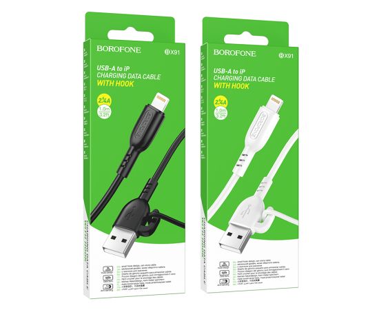 Дата-кабель Borofone BX91 с крючком подойдет для быстрой зарядки телефонов, смартфонов, планшетов и прочих портативных устройств с универсальным разъемом для техники Apple - Lightning 8-pin. Современный протокол позволяет использовать шнур для зарядки и для оперативного переноса данных между устройствами. Длина: 1 метр, вес: 22 г. Выполнен из качественных материалов. Поддержка зарядки током 2.4 А.