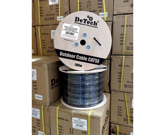 DeTech FTP внешний кабель кат.5е 4 пары 0.5мм CCA черная ПЭТ-оболочка со стальным тросом, 305м/кату