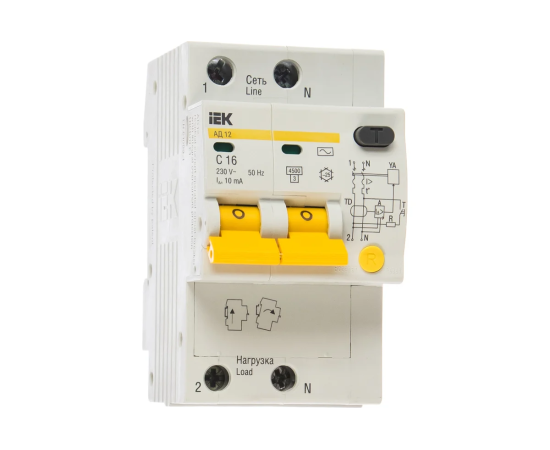 Дифавтомат IEK АД12 (MAD10-2-016-C-010) 16A тип C 4.5kA 10мА AC 2П 230В 3мод белый (упак.:1шт)