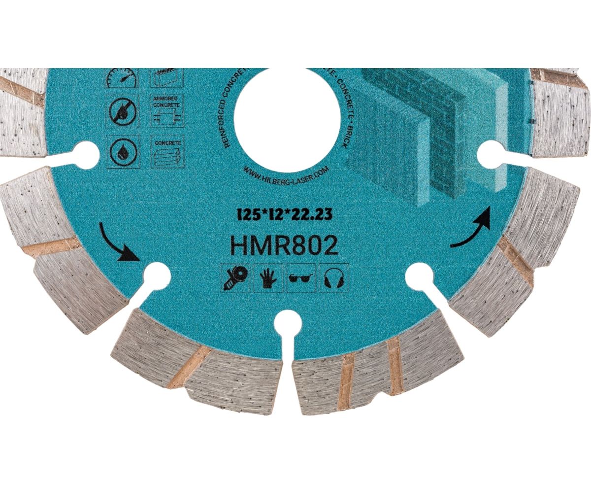 Диск алмазный отрезной Revolution 125х22.23х12 мм Hilberg HMR802 предназначен для использования с УШМ или штроборезом. Служит для обработки армированного бетона, слабо армированного бетона, бетона, бордюрного камня, натурального камня, тротуарной плитки, кирпича.