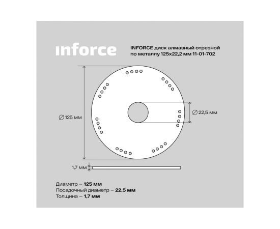 Диск алмазный отрезной по металлу Inforce 11-01-702 125х22,2 мм
