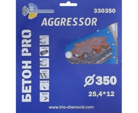 Диск алмазный отрезной TRIO-DIAMOND Pro Aggressor 330350 350x25,412 бетон