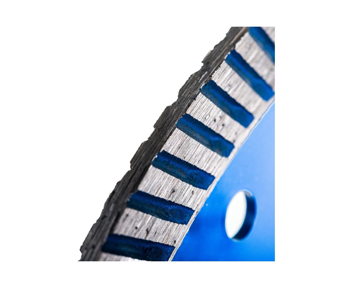 Особенности: диск с рифленой кромкой имеет более чистый и аккуратный по сравнению с сегментными дисками рез. За счет турбированной кромки увеличивается скорость реза, отверстия на теле диска способствуют лучшему охлаждению и продлевают срок службы. Подходит для сухого и мокрого реза.