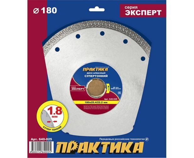 Диск алмазный турбированный Практика Супер тонкий 180 х 25,4/22 мм (640-025) толщина 1,8 мм/1 шт/коробка