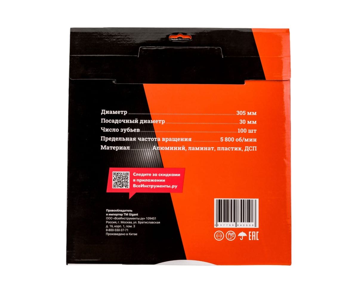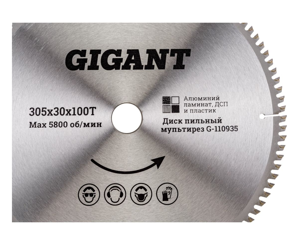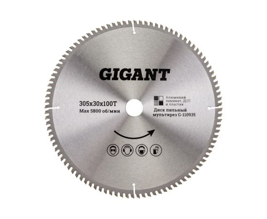 Диск пильный мультирез по алюминию, ламинату, пластику, ДСП Gigant G-110935 305x30x100Т 100 зубьев