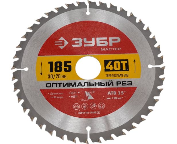 Диск пильный по дер. Зубр 36912-185-30-40_z01 d-185мм d(посад.)-20мм (циркулярные пилы)