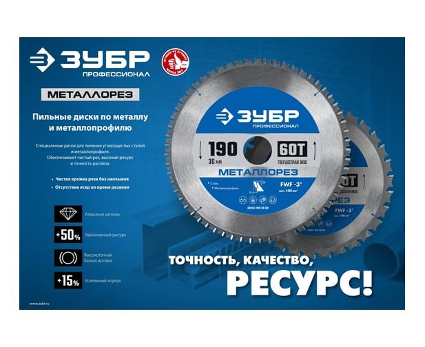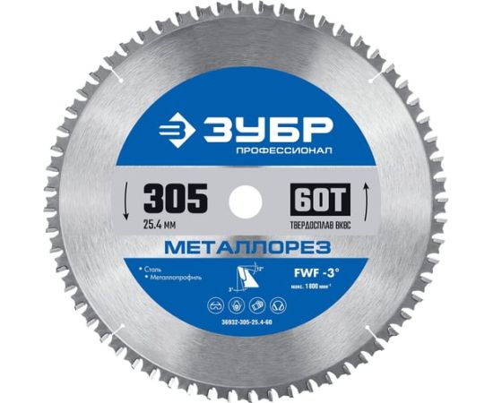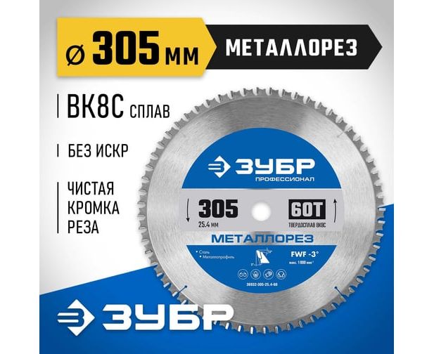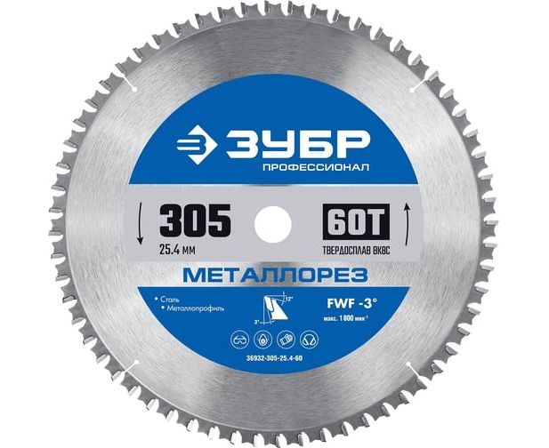 Диск пильный по металлу Зубр 36932-305-25.4-60 d-305мм dпосад-254мм торцовочные пилы