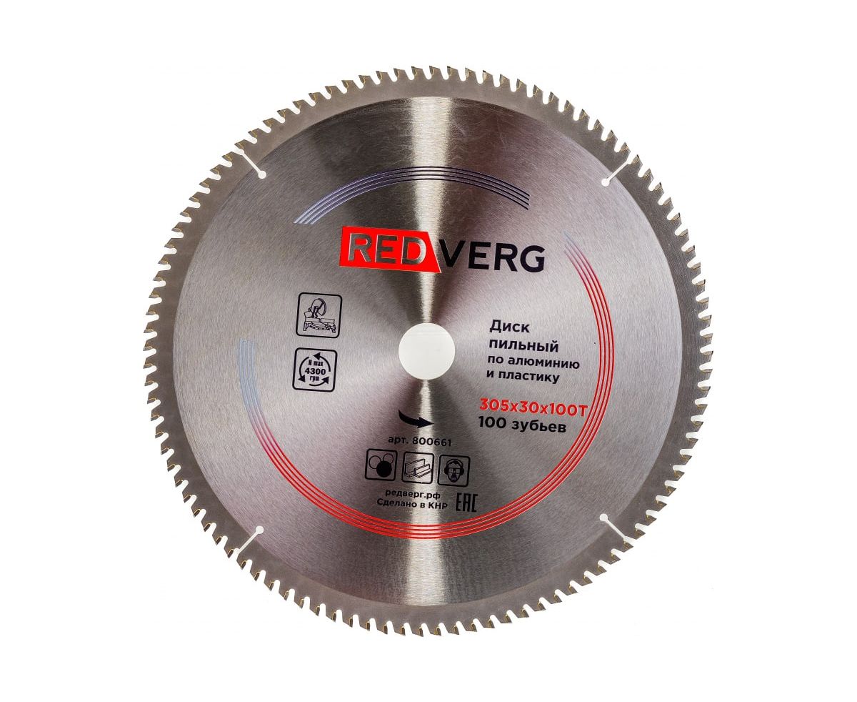 Технические характеристики пильного диска REDVERG 6621270 Тип по алюминию Диаметр 305 мм Диаметр (дюйм) 12 Посадочный диаметр 30/25.4 мм Угол заточки -5 Количество зубьев 100 шт Max число оборотов 4300 об/мин