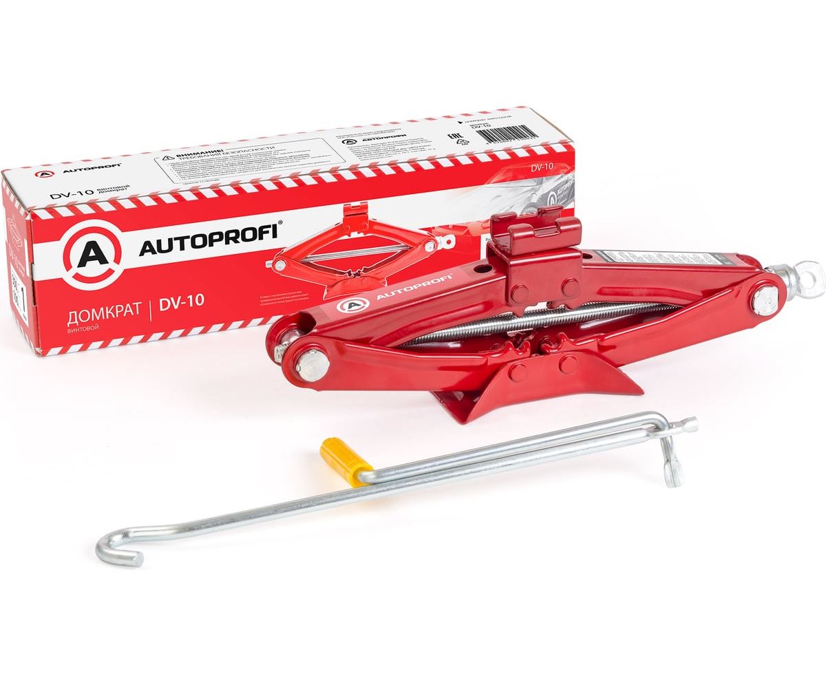 Ромбический домкрат AUTOPROFI DV-10 используется на любой ровной и твердой поверхности. Модель представляет собой компактное оборудование, которое служит для поднятия автомобиля на высоту до 390 мм.