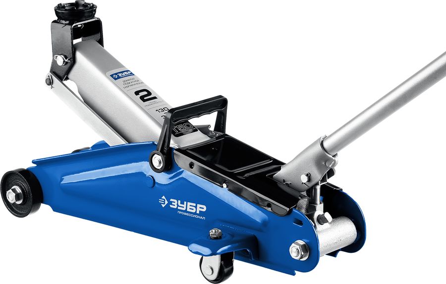 Если вы ищете универсальное устройство, которое сможет поднимать большинство легковых автомобилей, в том числе и кроссоверы, то обратите внимание на подкатной гидравлический домкрат ЗУБР T50. Его грузоподъемность составляет 2 т, а минимальная высота подхвата равна 130 мм. Это оборудование имеет очень прочный усиленный корпус, выполненный в синем цвете. Инструмент сделан из нержавеющей стали, обладающей прекрасными показателями устойчивости к механическим повреждениям. Устройство подойдет для использования, как в небольшом гараже, так и в крупной шиномонтажной мастерской.