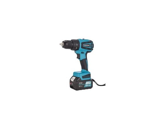 Аккумуляторная дрель бесщеточная ударная ProfiPower MKDHP-18V предназначена для строительных и ремонтных работ, сверления древесины, металлов, керамики и синтетических материалов, для завинчивания или откручивания винтов, нарезания резьбы. Область применения Инструмент предназначен для работы в условиях умеренного климата с диапазоном температур от -10 до + 35 °С и относительной влажности не более 80%, с отсутствием прямого воздействия атмосферных осадков и чрезмерной запыленности воздуха. Корпус изделия обеспечивает защиту инструмента от твердых частиц размером более 12 мм, но не защищает от воды. Режим работы инструмента повторно-кратковременный с номинальным периодом «работа/перерыв» – 15 мин/5 мин. После непрерывной работы в течение 15-20 минут его необходимо выключить, возобновить работу с ним можно через 5 минут! Не перегружайте мотор электроинструмента. Время работы не более 20 часов в неделю. Источник питания Данный инструмент должен подключаться к низковольтному аккумулятору питания с напряжением, соответствующим напряжению, указанному на идентификационной пластинке, и может работать только от него. Изделие оснащено зарядным устройством, которое имеет двойную изоляцию и может подключаться к розеткам без провода заземления. Устройство и работа Инструмент состоит из бесщеточного электродвигателя, редуктора, помещенного в полимерный корпус, снабжен патроном для крепления оснастки. Управление производится с помощью переключателя режимов, переключателя направлений вращения, регулятора скорости вращения и триггерной клавиши выключателя.