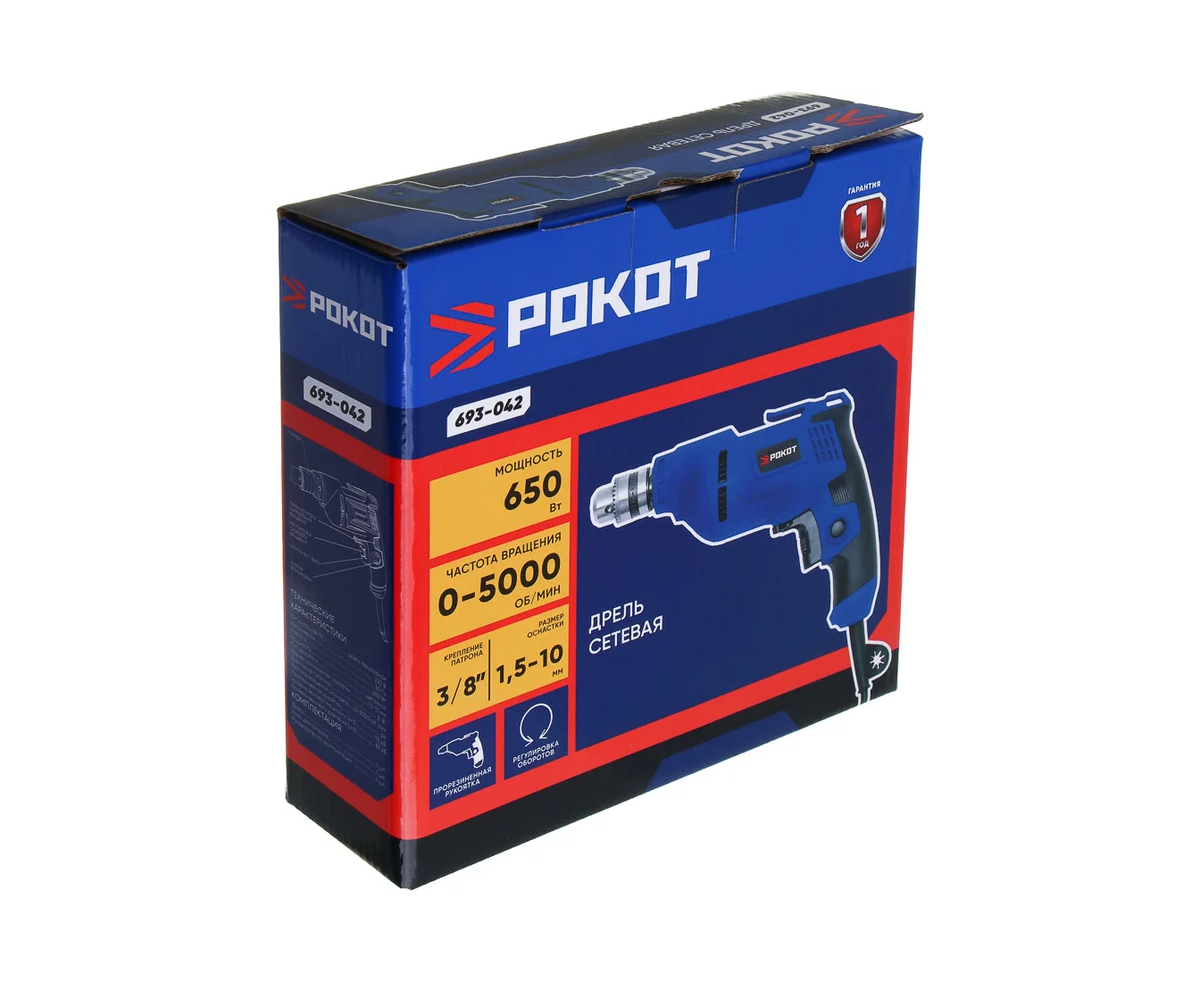 Дрель РОКОТ 693-042 650Вт, 10 мм патрон, 0-5500 об/мин