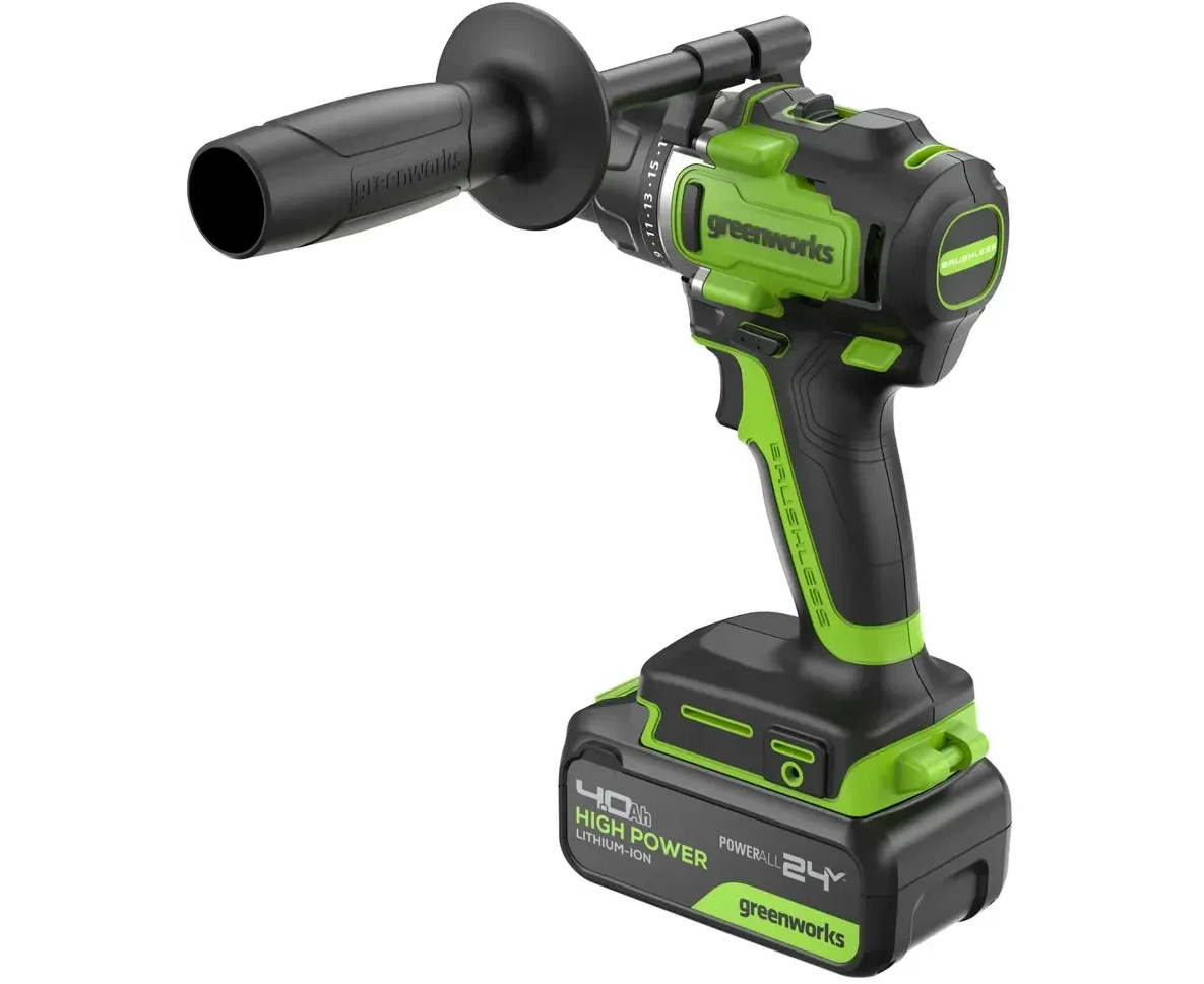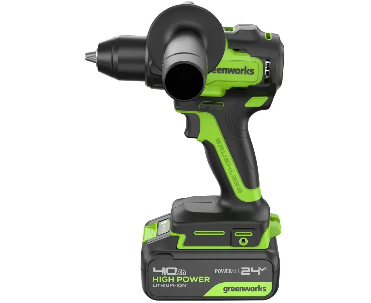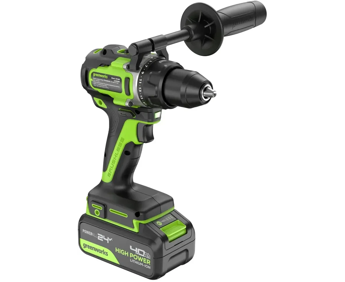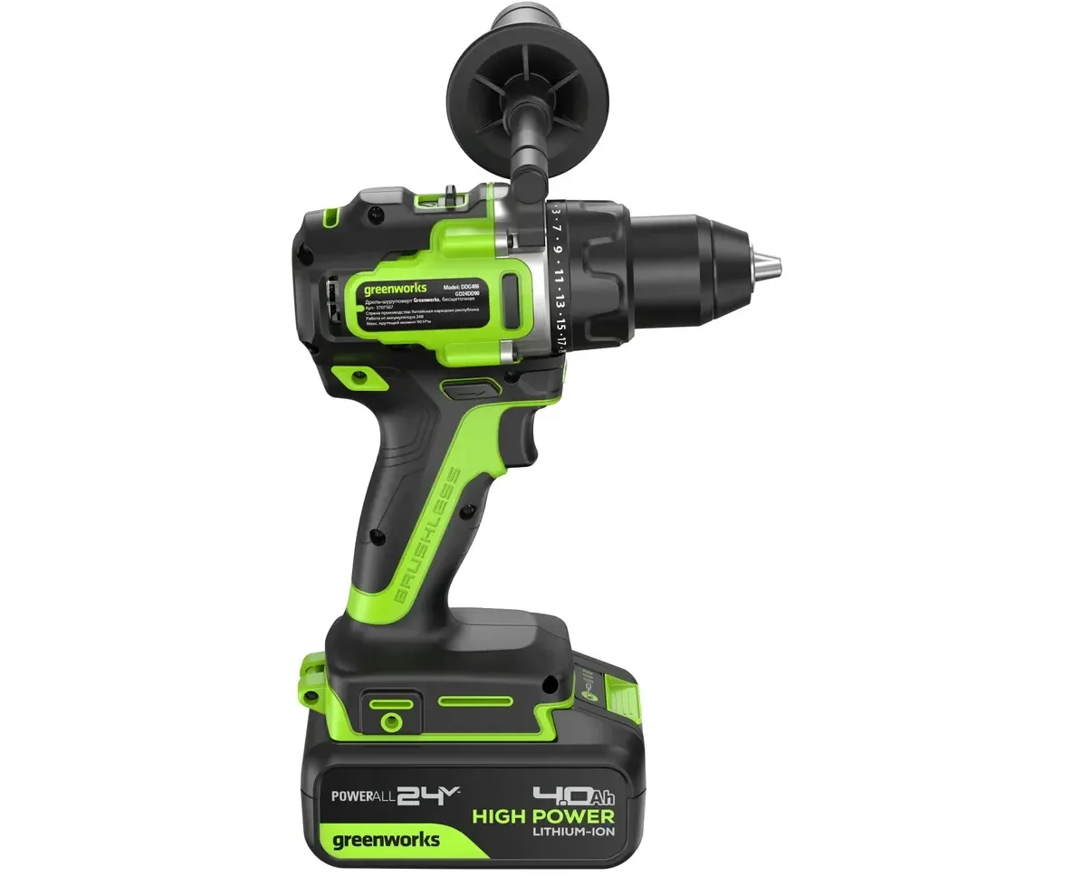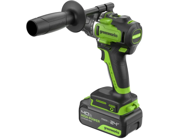 Дрель-шуруповерт Greenworks GD24DD90 (3707507CUB) аккумуляторная, 24V, 90Нм, бесщеточная, 45/90Нм, 1х4Ач, ЗУ, кор