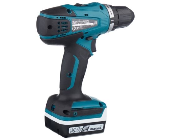 Дрель-шуруповерт Makita DF347DWE Дрель ак,(14.4В,2х1.5Ач Li-ion,БЗП-10мм,0-400/0-1400об/м,30/15Нм,1.4кг,чем,G-серия)