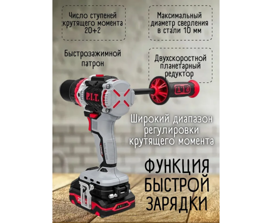 Дрель-шуруповерт P.I.T. PSB20H-13D/3 с АКК и ЗУ