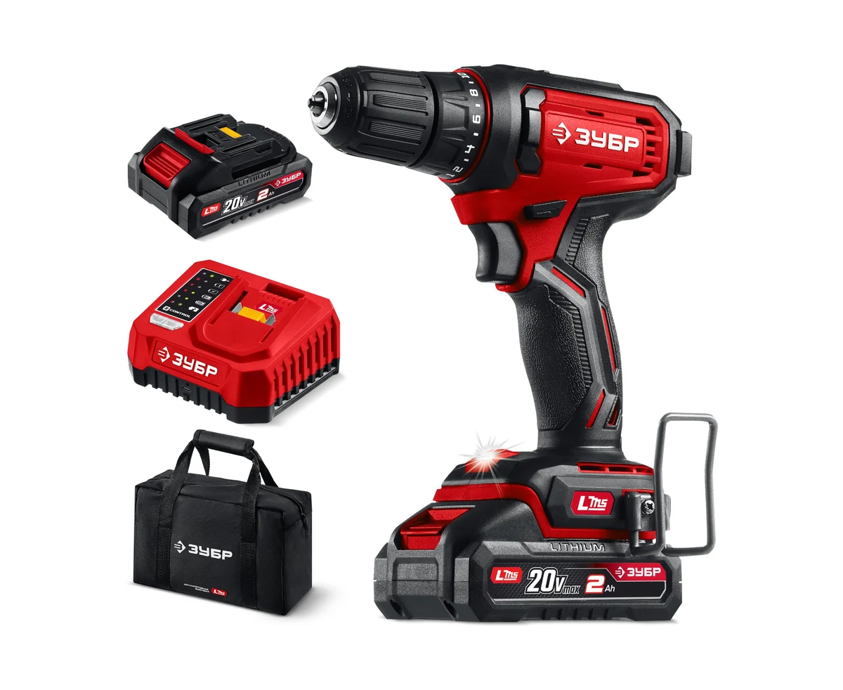 ЗУБР 20 В, 40 Н·м, 2 АКБ LMS (2 А·ч), дрель-шуруповерт, сумка ДШ-40-22 - инструмент из единой аккумуляторной системы LMS для 500+ инструментов.