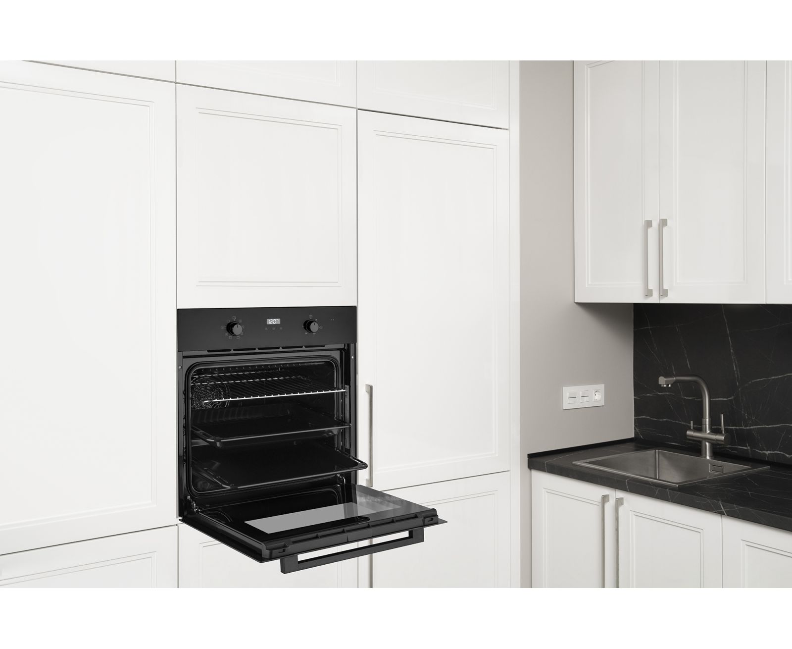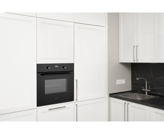 Электрический духовой шкаф от Weissgauff, выполненный в чёрном цвете, оснащенный утапливаемыми рукоятками PIPO, сенсорным программатором, а также крупным дисплеем с индикацией белого цвета, имеет 3 стекла в дверце, а богатый выбор программ откроет перед вами сразу 9 режимов, каждый из которых раскроет новые возможности приготовления вкуснейших блюд!