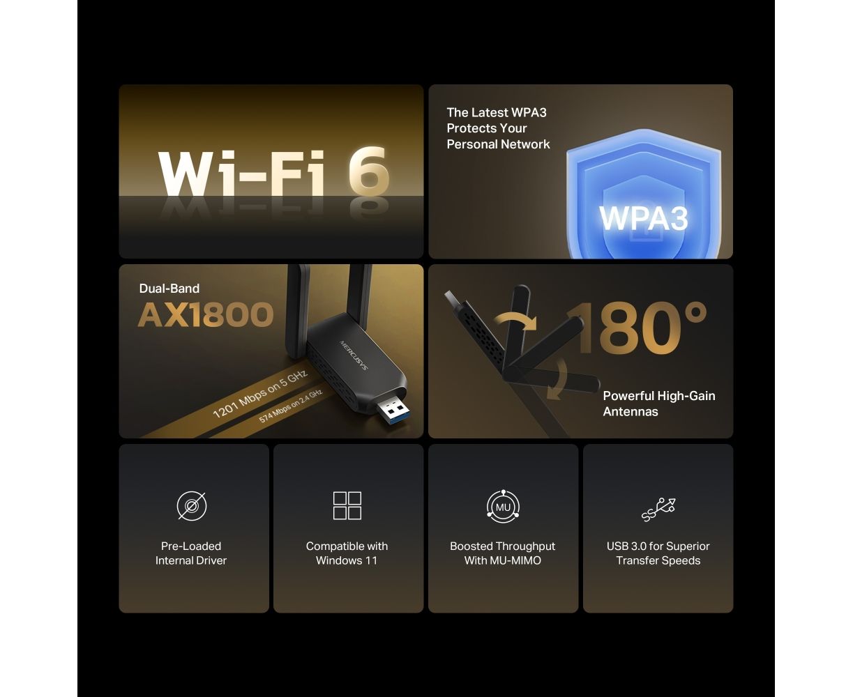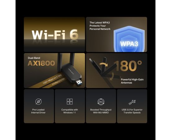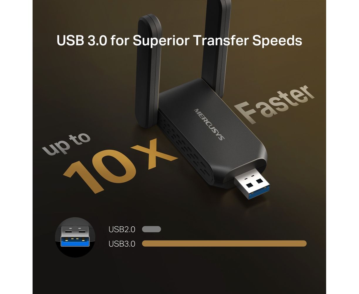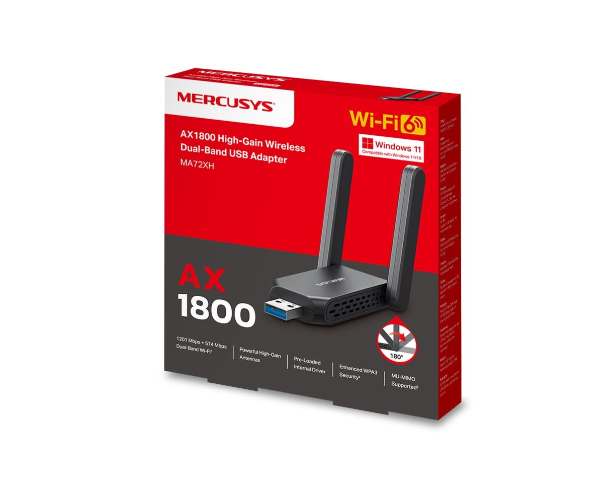 Двухдиапазонный USB-адаптер Mercusys MA72XH высокого усиления с поддержкой Wi-Fi AX1800