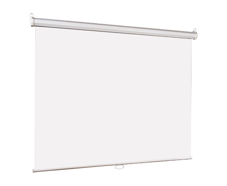 ДополнительноРазмер полотна: 150 х 150 см, угол обзора 160°, универсальное полотно с белой матовой поверхностью, равномерное распределение света, отсутствие швов на проекционной поверхности, пружинный механизм