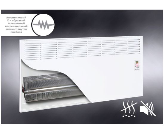Алюминиевый Х – образный монолитный нагревательный элемент внутри прибора нагревает воздух при помощи специальных пластин (крылышек). Холодный поток воздуха заходит через нижние каналы, проходит через нагревательный элемент, затем нагретый воздух выходит через верхние решётки. Происходит естественная конвекция воздуха и обогрев помещения. За счет такой конструкции не возникает шум, вызываемый нагревом и охлаждением данного прибора, не сжигается пыль и кислород. Конвекторы нагреваются за короткое время, по размерам занимают мало места, легкие по весу.