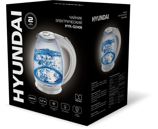 Электрочайник Hyundai HYK-G2409 белый/серебристый