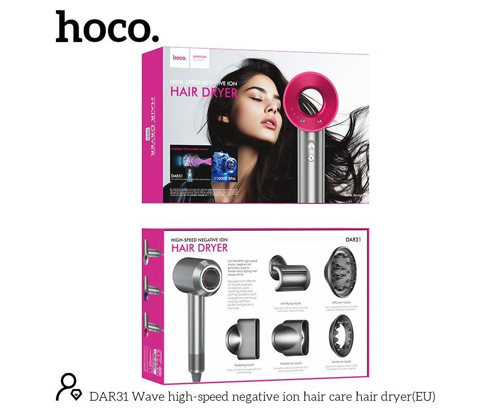 Фен HOCO DAR31 Wave high-speed negative ion hair care hair drye (rose red)
