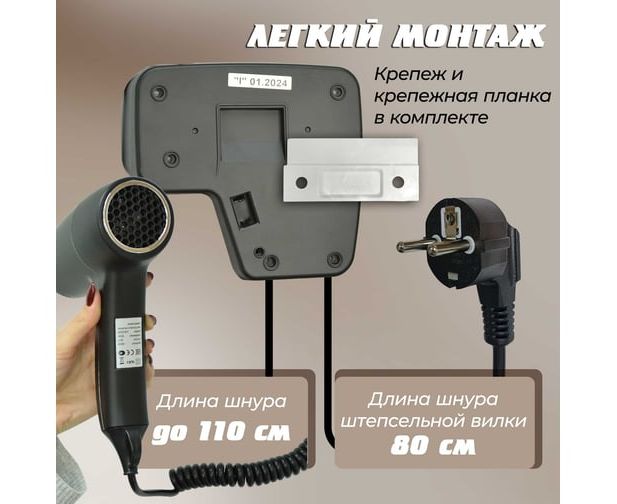 Фен Puff 1201Bl черный