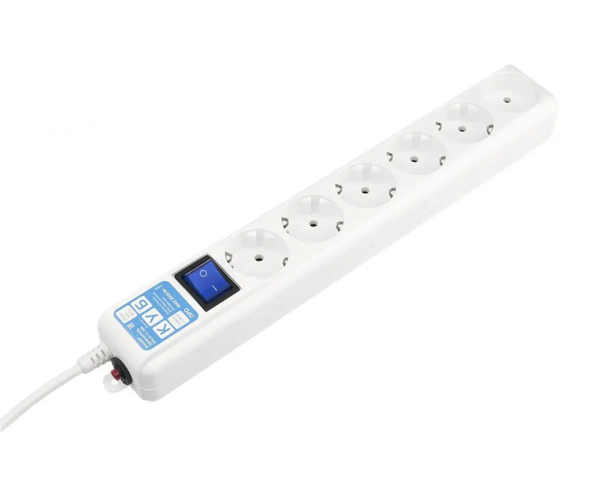 Длина кабеля 3 м Количество розеток 6 шт Напряжение сети 220 В Тип провода ПВС Сечение провода 3х1.0 мм² Заземление есть Выключатель на корпусе есть Max импульсный ток 6.5 кА Max нагрузка (Вт) 3500 Мощность (кВт) 3.5 Номинальная сила тока 16 А Количество USB портов нет шт Крепление на стену да Световая индикация да Морозостойкий нет Габариты без упаковки 52х374х41 мм Защитные шторки есть Цвет провода белый Порт USB Type-C нет Цвет корпуса белый Сила тока USB 0 А С выключателем на каждую розетку нет С предохранителем да Для подключения к ИБП нет