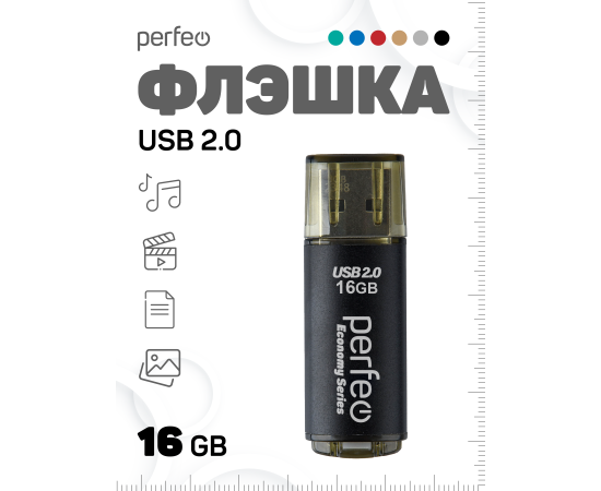 Память USB Flash 16 ГБ Perfeo E04 Economy Series [PF-E04B016ES]