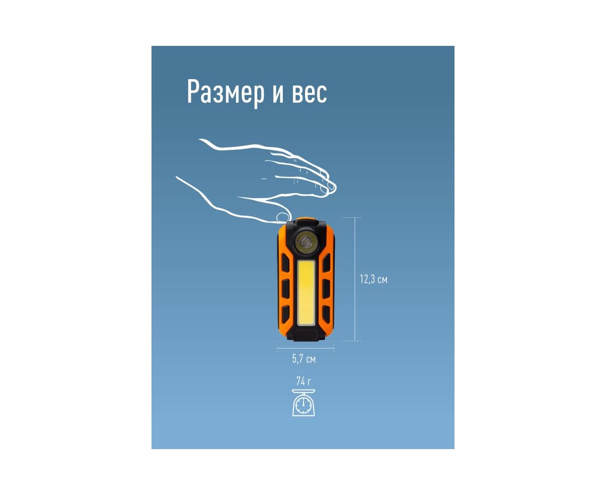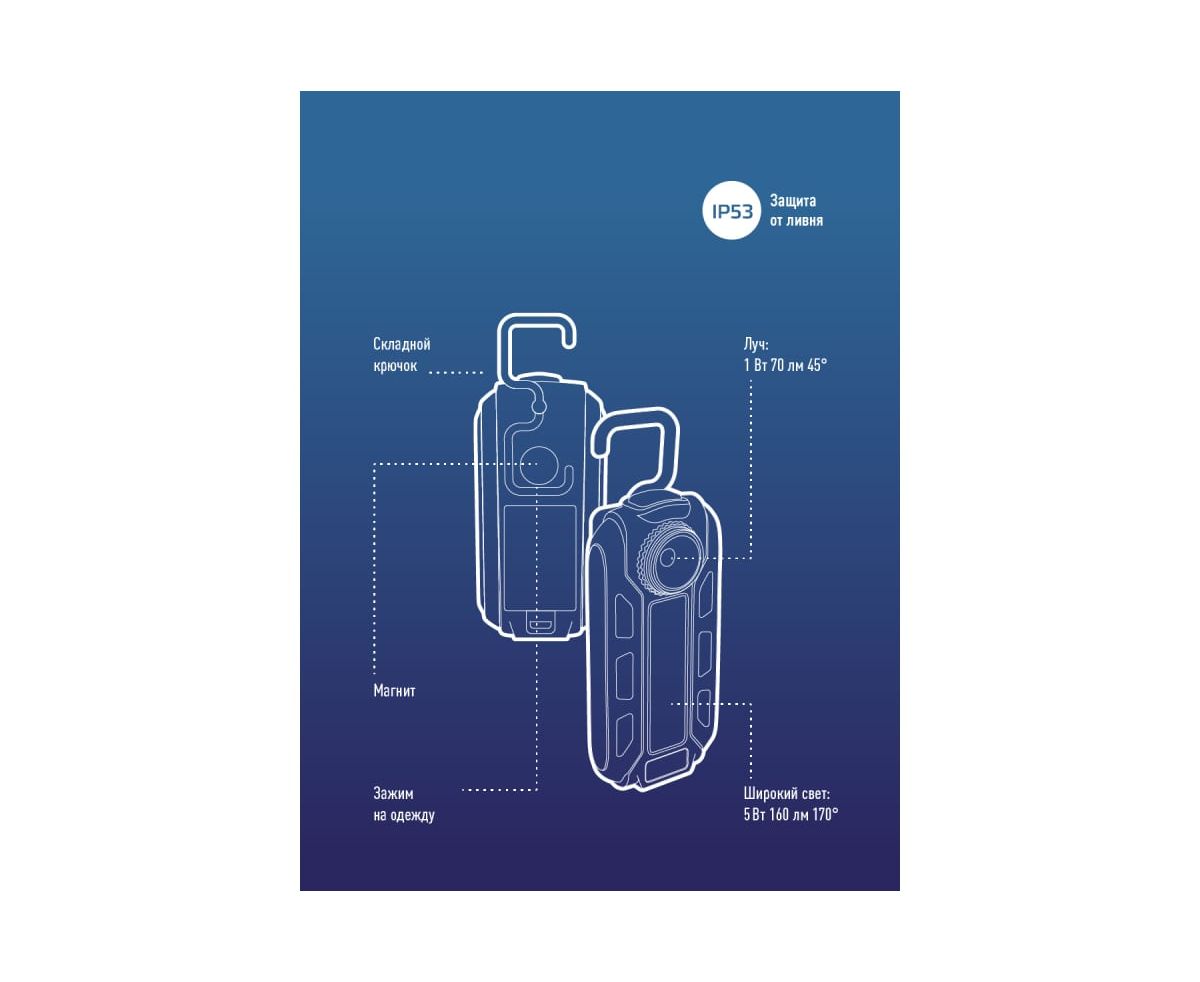 -Фонарь со складным крючком, магнитом и зажимом на корпусе.