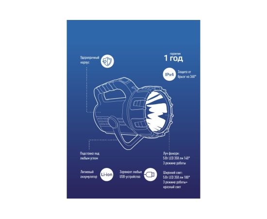 Фонарь КОСМОС Premium 5Вт направленный свет, 5Вт СОВ, литий 3600mAh, MICRO USB шнур в комплекте KOSAc8010WLith имеет умный индикатор зарядки покажет, сколько именно энергии осталось. Удобный переключатель: несмотря на 7 режимов света, фонарь легко включить и выключить длительным нажатием. Функция powerbank: подзарядка мобильных устройств. Подставка с регулируемым углом. Заряд фонаря от USB позволит использовать подзарядку даже в автомобиле или на природе от powerbank.