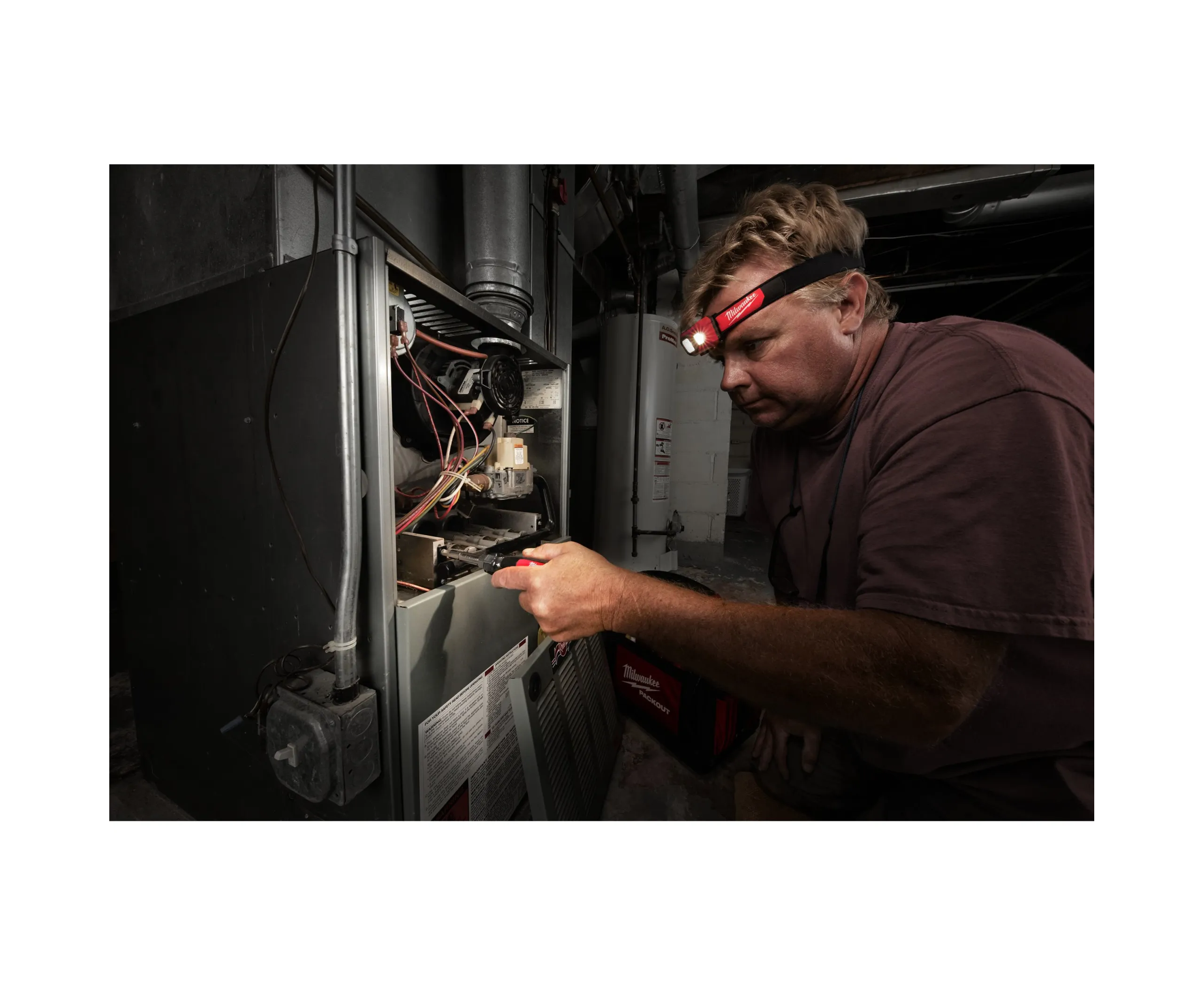 Налобный фонарь на батарейках Milwaukee HL-SF 4933471388 позволяет освободить руки для работы.