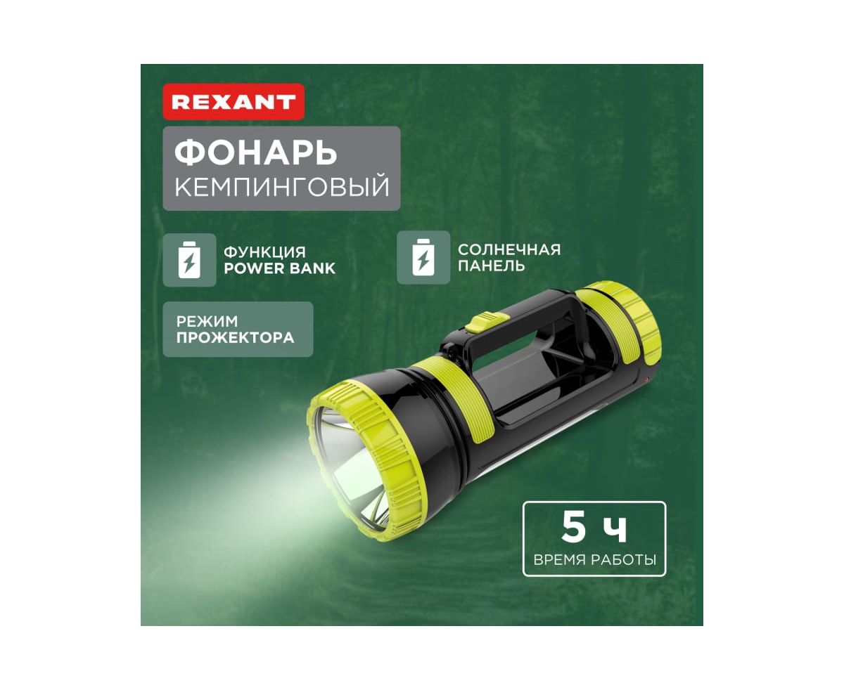 Преимущества REXANT с боковым светом, powerbank, солнечная батарея 75-7822
